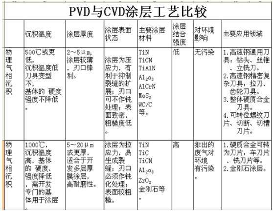 pacing: 0.544px; text-align: justify; background-image: initial; background-position: initial; background-size: initial; background-repeat: initial; background-attachment: initial; background-origin: initial; background-clip: initial; box-sizing: border-box !important; overflow-wrap: break-word !important;"> 6、數(shù)控刀片的精度等級(jí) 常見刀具材料有高速鋼、硬質(zhì)合金、涂層硬質(zhì)合金、陶瓷、立方氮化硼和金剛石等。 加工工件材料的類型主要有:鋼P、不銹鋼M、鑄鐵K、有色金屬N、優(yōu)質(zhì)合金S、淬硬材料H。 數(shù)控刀片的精度等級(jí): 例如型號(hào)CNMG120408,第三個(gè)字母M表示刀片的制造精度。 分深:硬質(zhì)合金涂層刀片可以用于干切削,這類工作方式影響深遠(yuǎn) 8、表面加工分為三大類:表面改性,表面鍍膜,表面處理 涂層概念:在強(qiáng)度和韌性較好的硬質(zhì)合金或高速鋼(HSS)基體表面上,利用氣相沉積方法涂覆一薄層耐磨性好的難熔金屬或非金屬化合物 作用:涂層刀具具有表面硬度高、耐磨性好、化學(xué)性能穩(wěn)定、耐熱耐氧化、摩擦系數(shù)小和熱導(dǎo)率低等特性,切削時(shí)可比未涂層刀具提高刀具壽命3~5倍以上,提高切削速度20%~70%,提高加工精度0.5~1級(jí),降低刀具消耗費(fèi)用20%~50%。 目前生產(chǎn)上常用的涂層方法有兩種:物理氣相沉積(PVD) 法和化學(xué)氣相沉積(CVD) 法 PVD和CVD兩種涂層相比的優(yōu)缺點(diǎn):, 按應(yīng)用領(lǐng)域分為以下幾大類: 車銷刀片